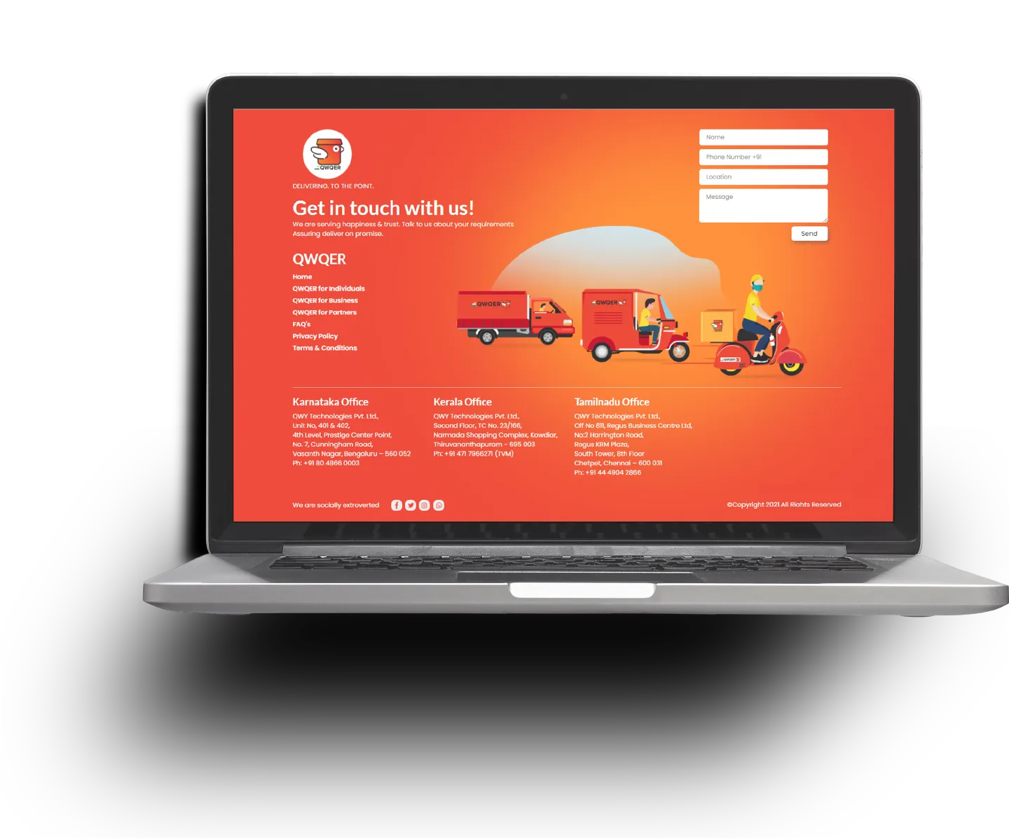 Qwqer, the delivery specialists, having commenced operations in South India, was rapidly expanding its foot print across the Southern states and required a website that embodied the foresight and dynamism of the brand. We chose red as the dominant colour, keeping in line with the brand’s colour palette, complemented by engaging vector images that further emphasized the brand’s story.