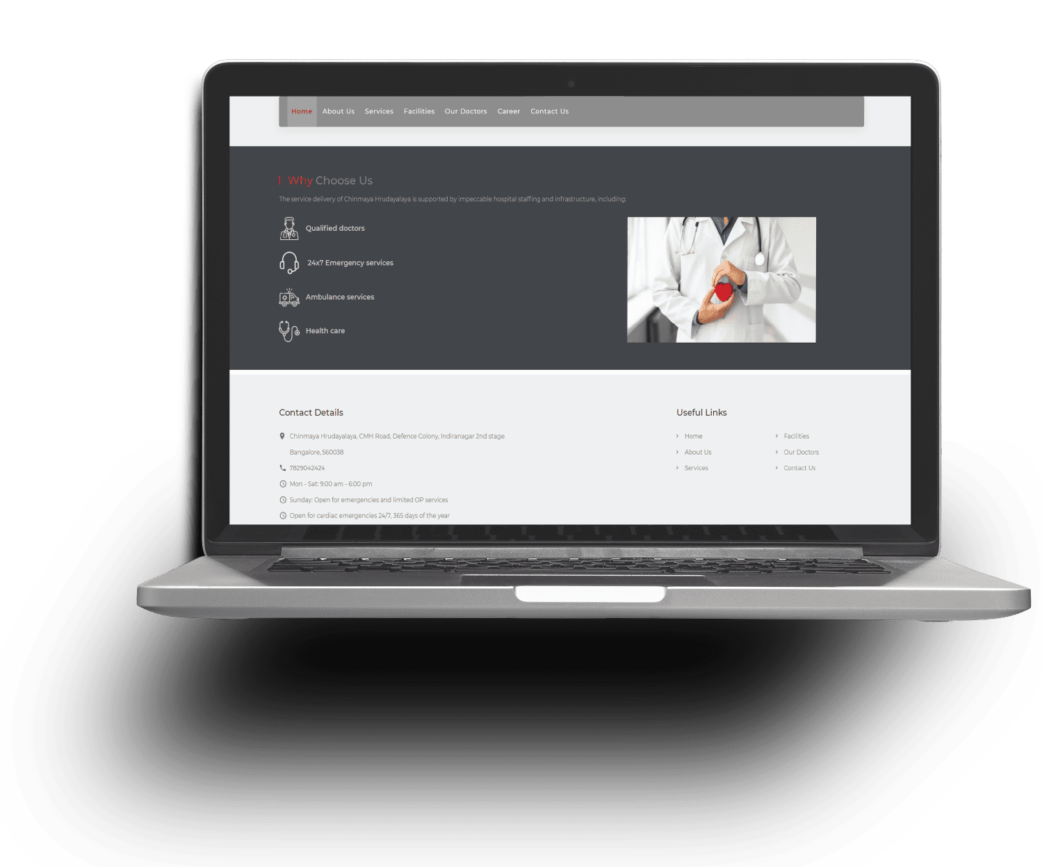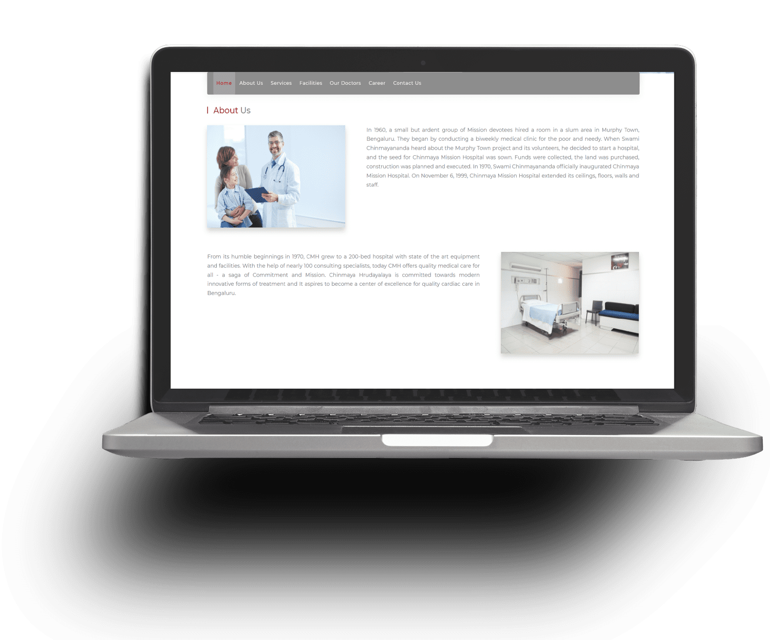 Chinmaya Hrudayalaya aims to meet global health care standards by providing affordable heart care to all. Keeping in mind the medical colour palette, we went ahead with white, light grey and a little bit of red to be in sync with the logo and brand. We used a good blend of illustrations and images to give the website a professional, friendly and approachable look and feel.