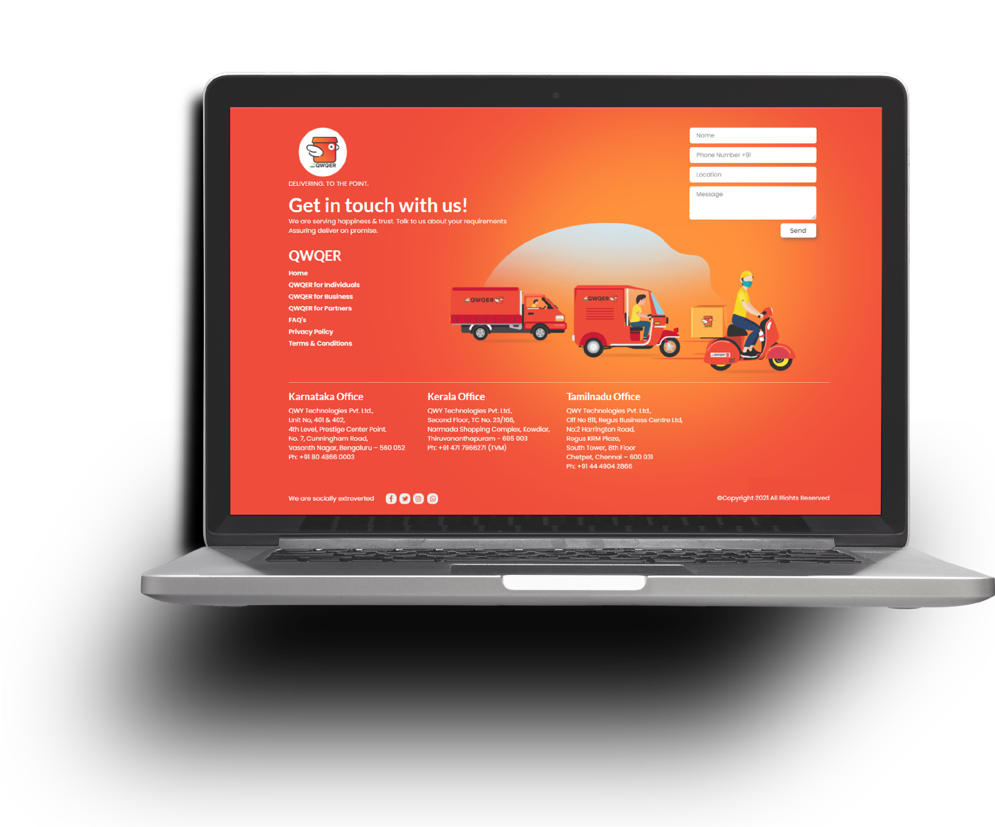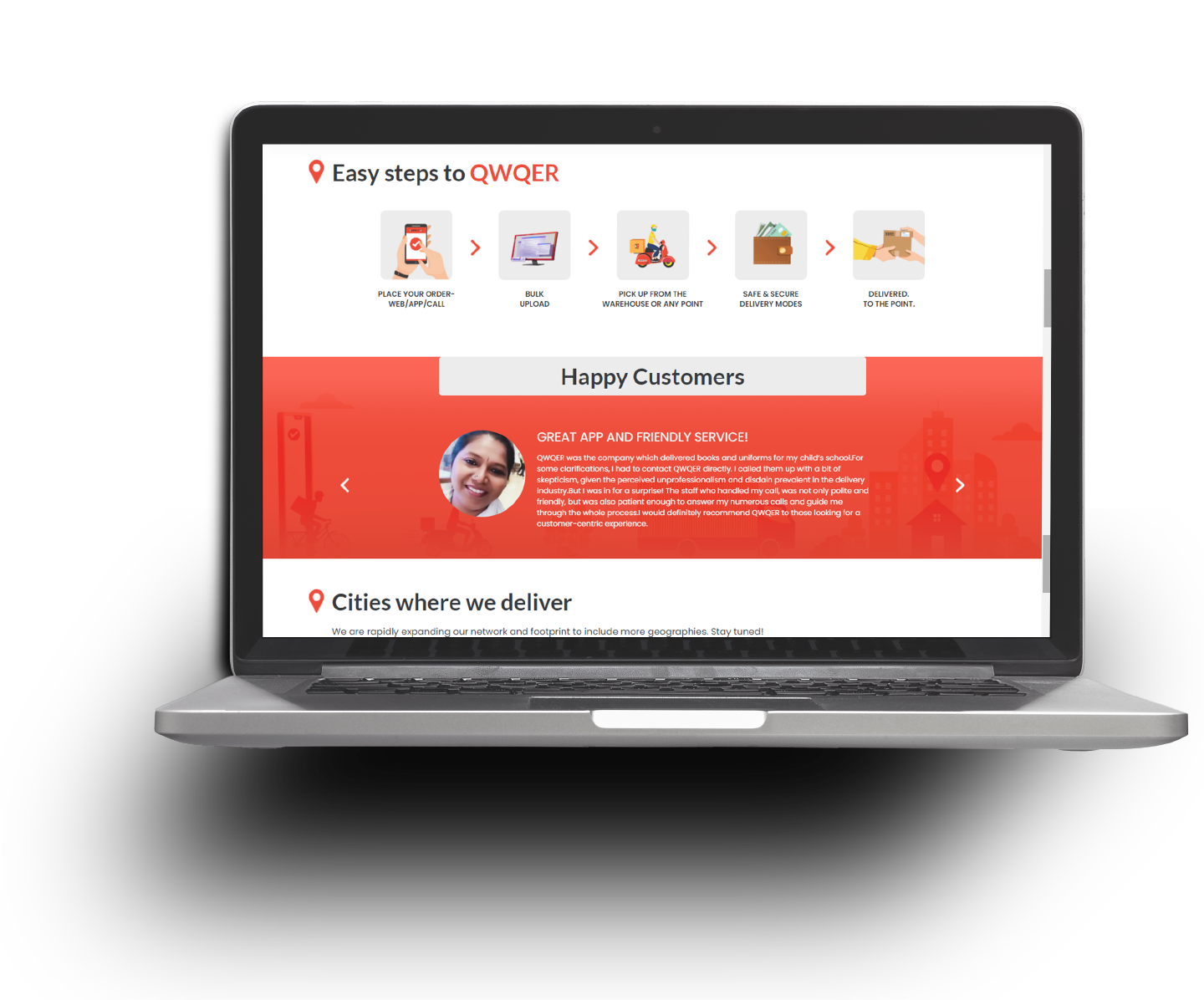 Qwqer, the delivery specialists, having commenced operations in South India, was rapidly expanding its foot print across the Southern states and required a website that embodied the foresight and dynamism of the brand. We chose red as the dominant colour, keeping in line with the brand’s colour palette, complemented by engaging vector images that further emphasized the brand’s story.